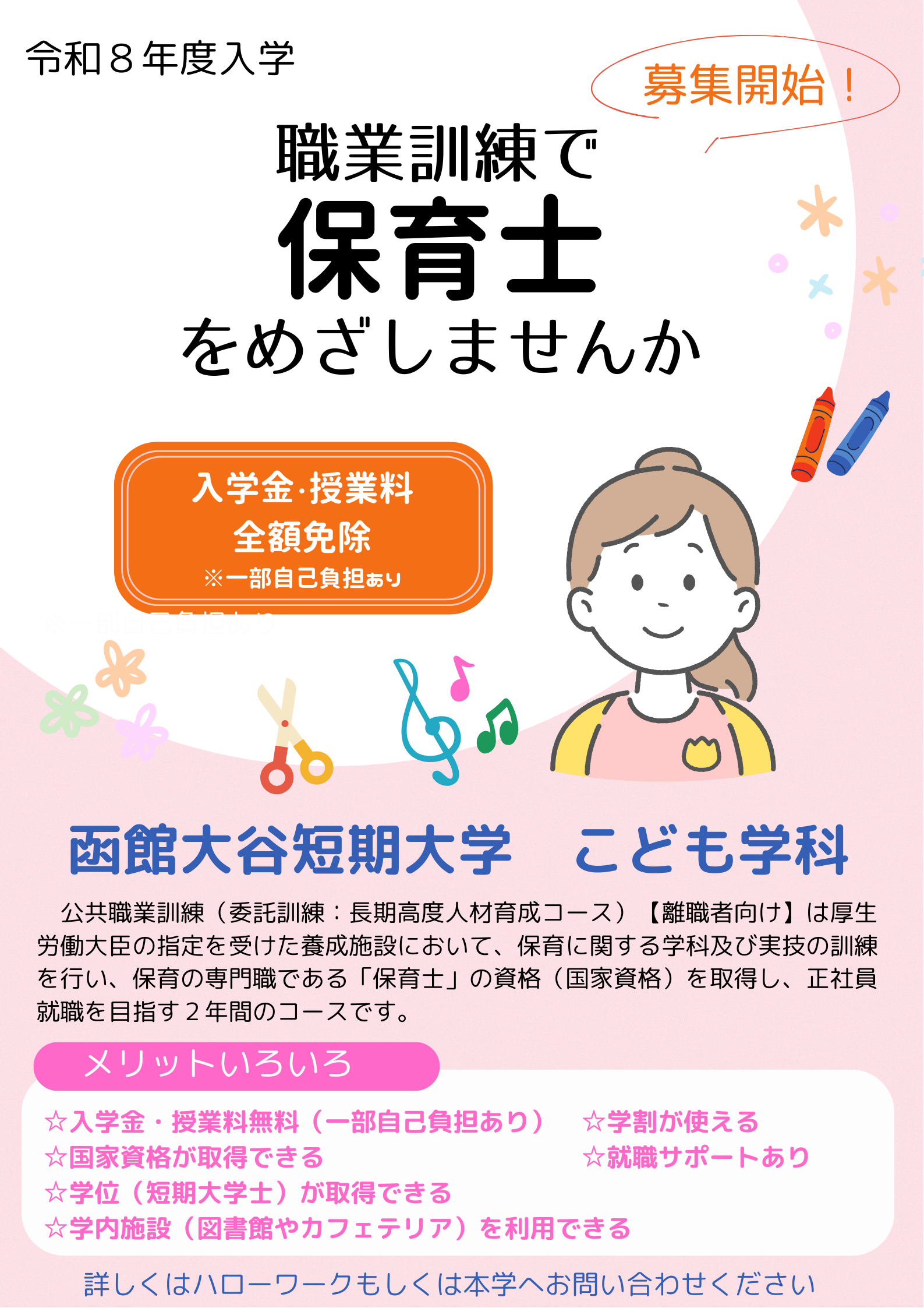 令和8年度・函館高等技術専門学院委託訓練生(保育士養成科・2年課程)募集開始 -